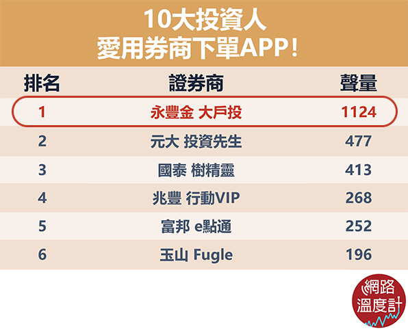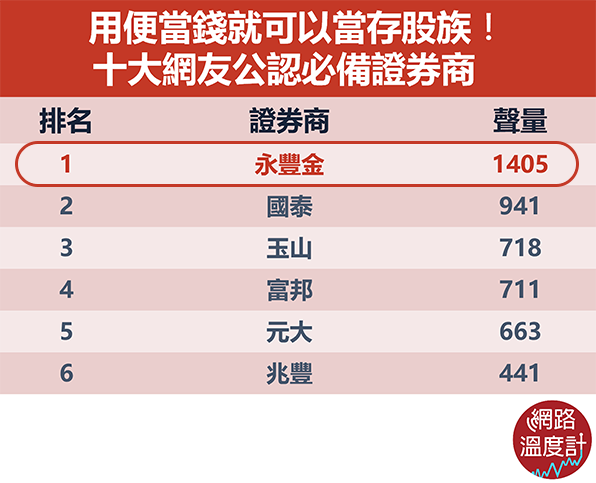 存股券商網路聲量排名第一名
